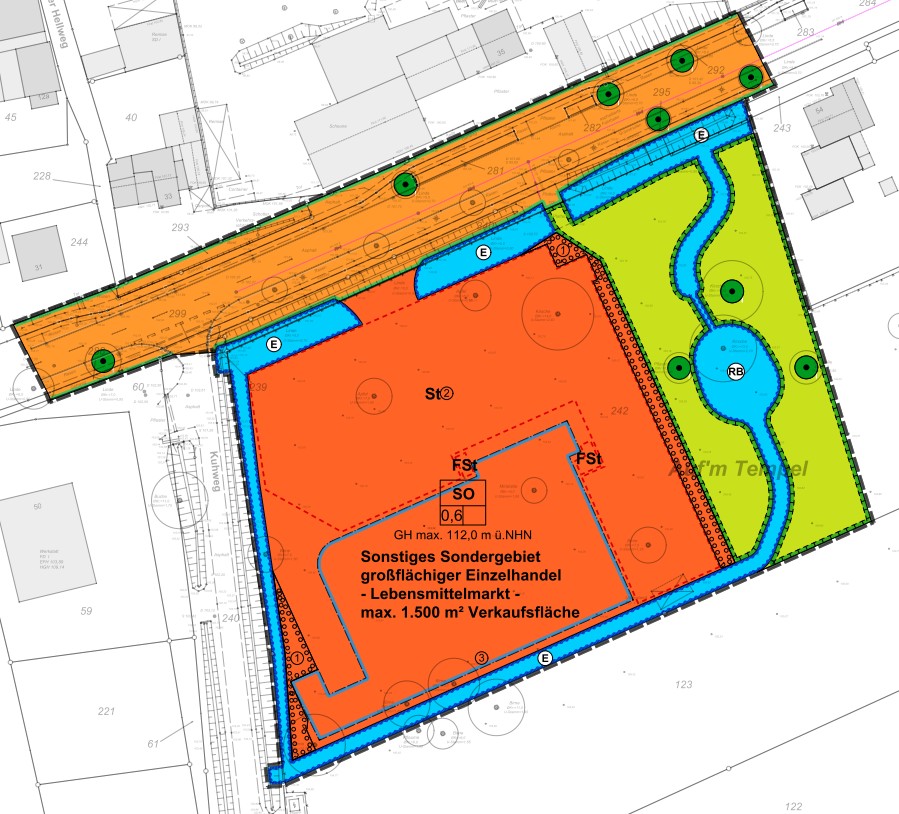 Im Stadtteil Büderich der Stadt Werl wurde durch einen vorhabenbezogenen Bebauungsplan auf einer bisher unbebauten Grünfläche das Planungsrecht für einen modernen, eingeschossigen Lebensmittelmarkt mit einer großzügigen Verkaufsfläche von 1.500 m² geschaffen. Dieser Markt wird an der vielbefahrenen Büdericher Bundesstraße, an der Ecke Kuhweg, errichtet und wird somit eine zentrale Anlaufstelle für die Versorgung des Stadtteils Büderich bieten.